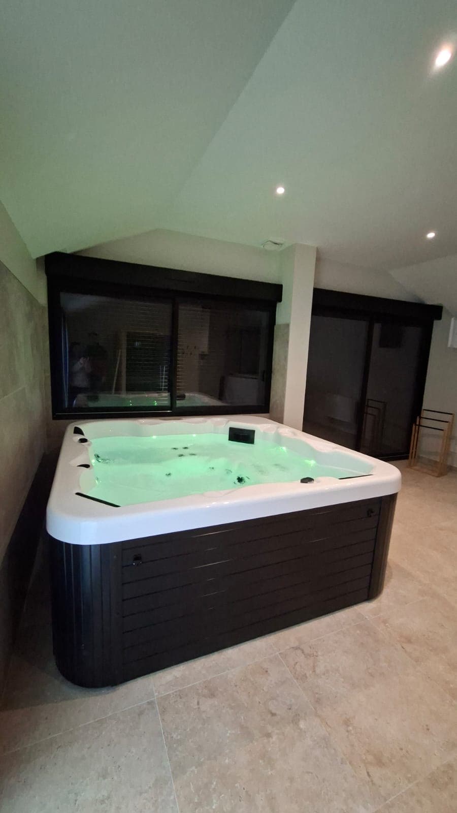 ✨ Частная спа-зона полностью оборудована для вашего благополучия: °2-местное джакузи с хромотерапией (71 струя для оптимального расслабления). °Инфракрасная сауна с звездным небом Тропический душ и смягчитель для чистой, кристально чистой воды. ° 🍾 Бесплатное шампанское и сладости по прибытии. °Бесплатная частная парковка в 1 минуте ходьбы.