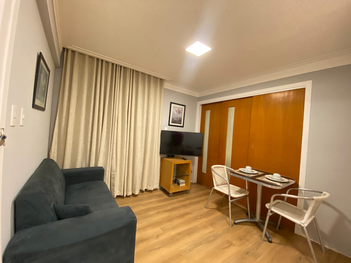. Студия в центре города, где можно насладиться красотой Сан-Луиса, 40 м2. Для 2 гостей Мы не принимаем гостей из Сан-Луиса/Массачусетса, а также гостей в жилье. Маленькая кухня для небольших блюд. Рядом с такими туристическими достопримечательностями, как Projeto Reviver, театр Артура Азеведу, фонтан Рибейран и в 4 км от UFMA Рядом с жильем есть бар с пагодой в выходные, поэтому это не рекомендуемое место для тех, кто хочет учиться в эти дни или хочет тихое место для отдыха