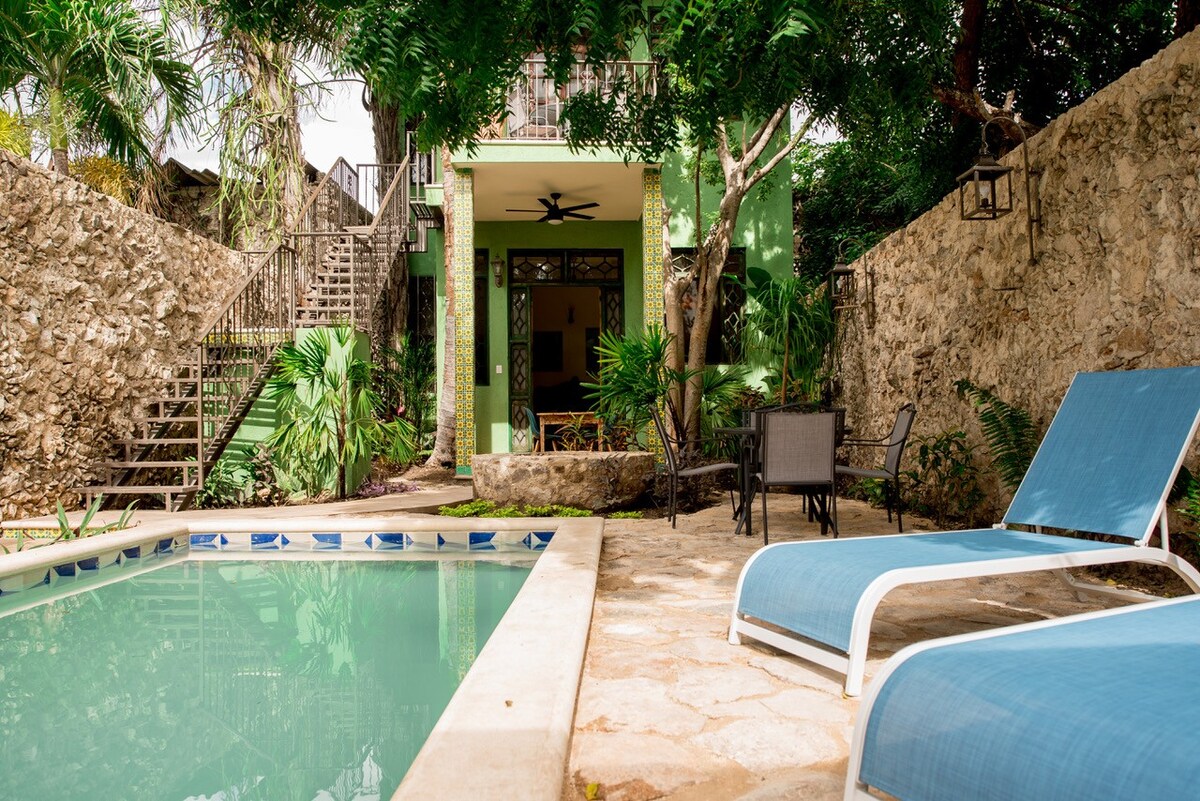 Просторная квартира в колониальном доме, идеально подходит для двоих. Расположена к востоку от центра Мериды, недалеко от района ChemBech, всего в 20 минутах ходьбы от главной площади. Он приветствует путешественников, ищущих спокойствия и самоанализа. Уникальный стиль и дизайн с роскошной отделкой гарантирует уединение вдали от центра города. Квартира полностью частная, на нижнем уровне. К услугам гостей полностью оборудованная кухня и гостиная, бассейн, сад, терраса, одна спальня с кроватью размера King size с мраморной ванной комнатой.