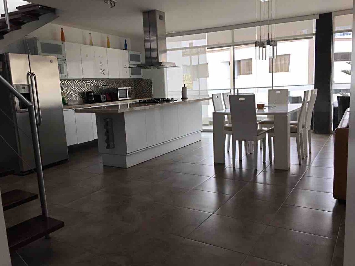 ПЯТИЗВЕЗДОЧНОЕ ЖИЛЬЕ. ОРИЕНТИРОВАНО НА СЕМЬЮ. Высокое качество. Супер чистый дом. 3 этажа. 500 м2. Очень удобно. Фантастическая архитектура. Потрясающий вид повсюду. Дом города напротив океана + развлечения для серфинга. Тихий район. Лучшая погода, чем в Лиме. 100 метров к югу от Пеньяскаля. Пляж Санта-Роса в Лиме, самый похожий на пляжи северного Перу. Крупный белый песок!