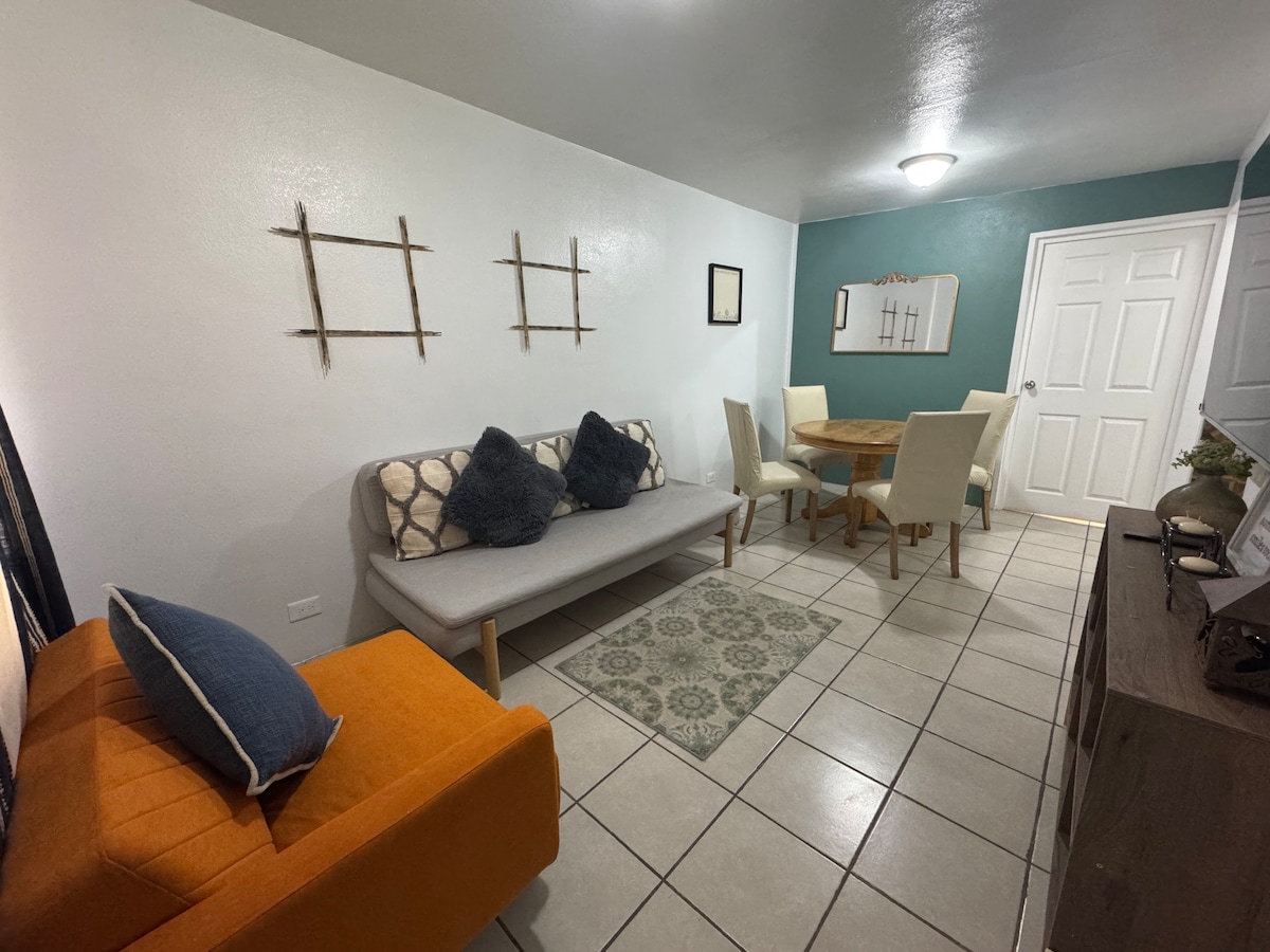 Наслаждайтесь комфортом этого нового, тихого и очень центрального жилья. Отличный вид и великолепное расположение всего в 5 минутах от границы Мексики и США. Всего в нескольких кварталах от оживленной улицы Авенида Революсьон. Всего в нескольких шагах от ресторанов, ночных клубов и медицинских учреждений. К услугам гостей 1 спальня (1 кровать размера Queen size + надувной матрас), 1 телевизор 50дюймов с приложениями: HBO, Netflix, MLB. Кухонная утварь, стиральная машина, сушилка и утюг, фен. Бесплатная парковка с круглосуточной охраной.