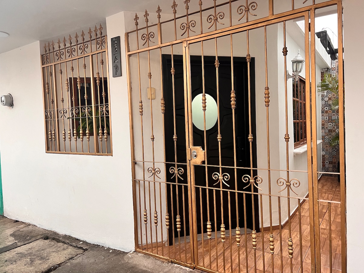 Наслаждайтесь теплом этого тихого и центрального жилья. У нас есть спальня с двуспальной кроватью, кондиционером и телевизором, гостиная-столовая с оборудованной кухней (холодильник и плита) и парковка для среднего автомобиля. Мы находимся в пяти минутах ходьбы от туристических достопримечательностей центра города. (Пасео-Колон,Пасео-дель-Рио,Аламеда, канатная дорога) Остановитесь в одном из самых тихих и безопасных районов Орисабы, где вы проведете приятный день с прекрасным видом на канатную дорогу.