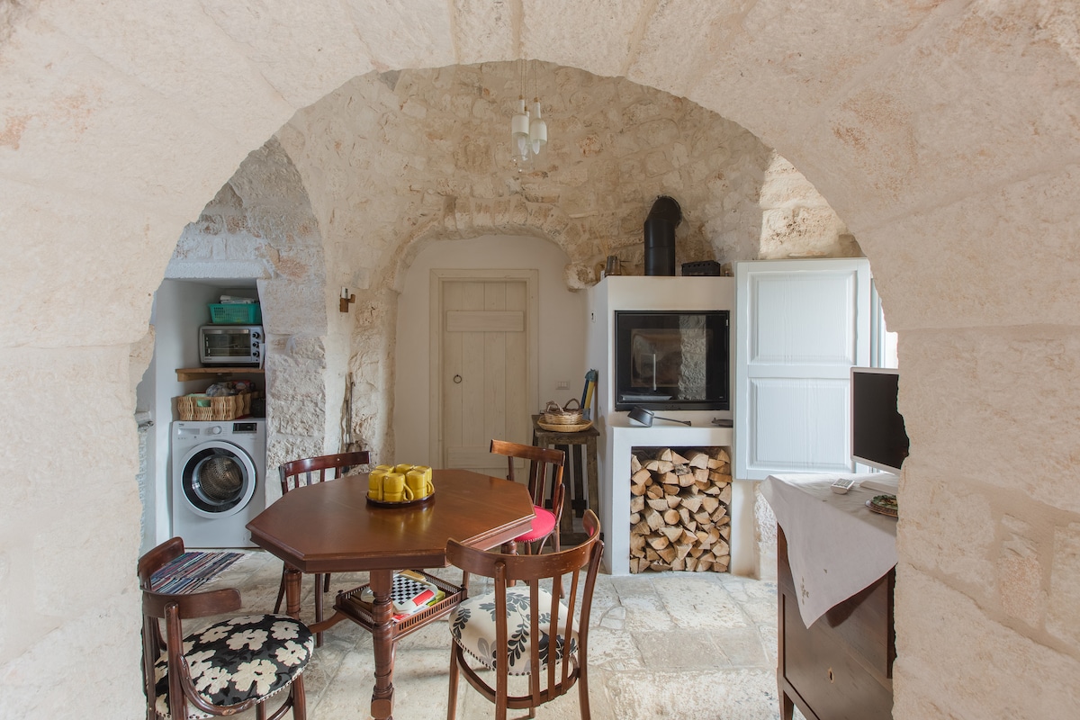 Отремонтированный трулло в тихом месте в сельской местности с аутентичным стилем, большинство интерьеров перерабатываются или заново изобретают старую мебель в современном функциональном стиле. Есть 1 спальня с двуспальной кроватью и 1 диван-кровать в гостиной. Недавно отремонтированная ванная комната с душем,полностью оборудованная кухня,стиральная машина и много места на открытом воздухе (одна терраса с выходом из спальни и одна с другой стороны с барбекю. Доступ к бассейну общий с гостями других 2 объектов (без внешнего).