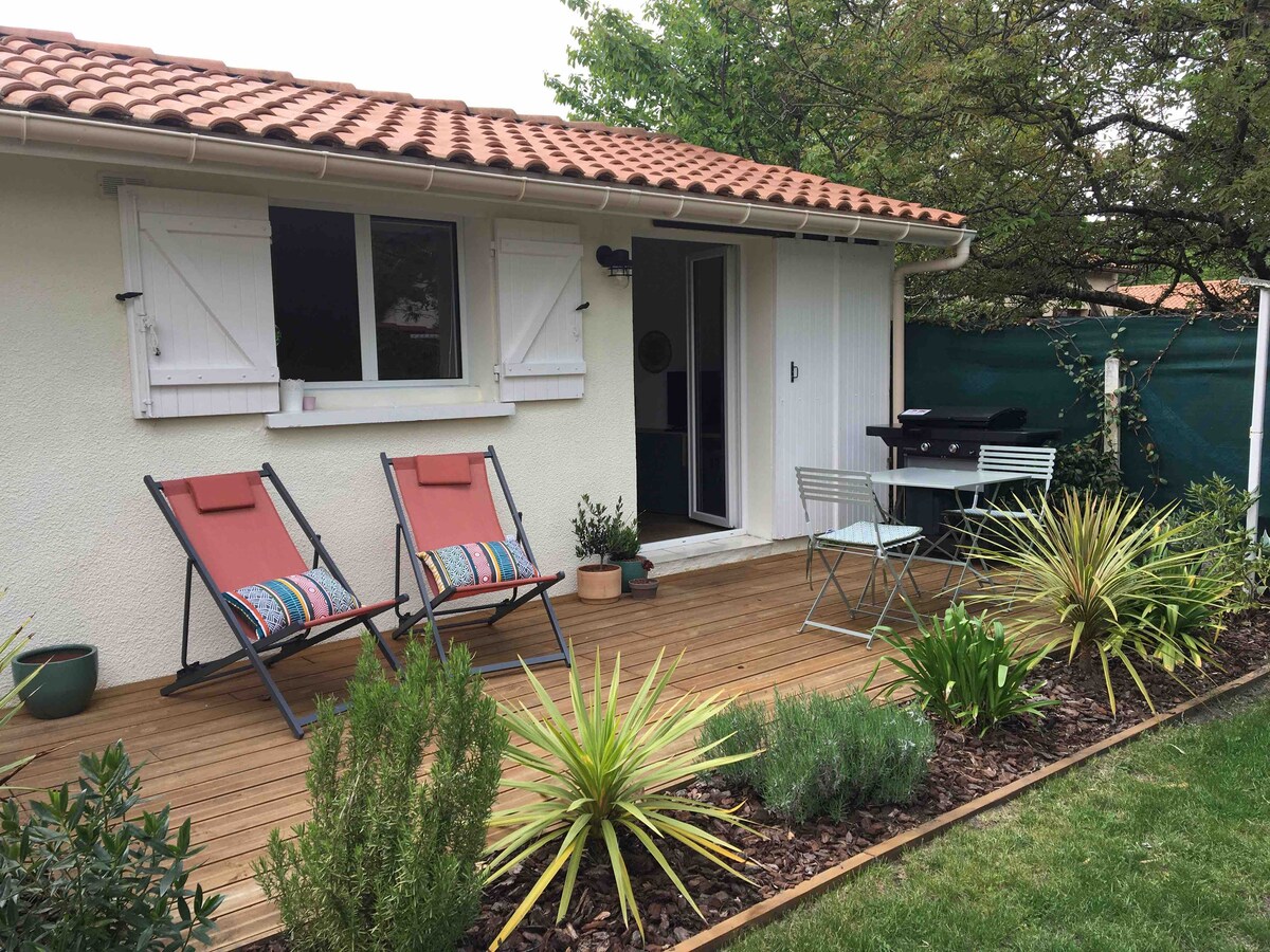 🌿 Studio contemporain entre Bordeaux et l’océan, situé dans un quartier calme à mi-chemin entre Bordeaux (25 min) et le bassin d’Arcachon (40 min). Détendez-vous sur la terrasse verdoyante, partez découvrir les lacs et sentiers à vélo ou à pied, et profitez d’un logement confortable et tout équipé : 🛏️ coin nuit douillet 🍳 kitchenette moderne 🚿 salle d’eau design 🌳 Coin terrasse 🚗 Parking devant la maison sur trottoir Idéal pour une escapade nature ou un séjour professionnel au calme.