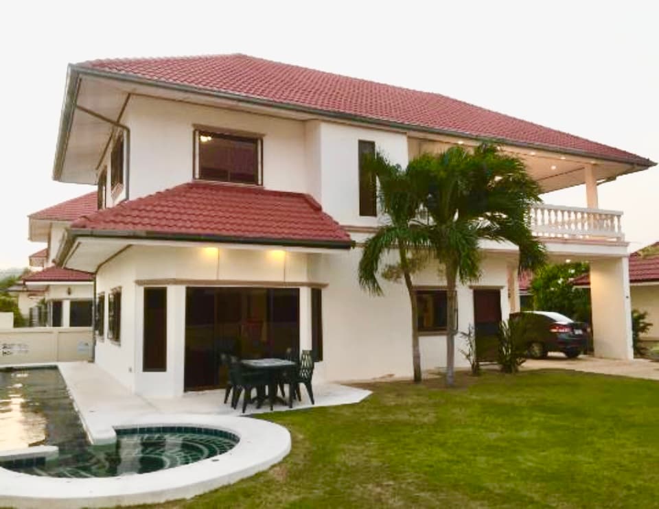 Если вам нравится ваш частный и тихий дом для отдыха прямо к красивому пляжу и бассейну длиной 50 м перед вашим домом, это пляжный дом для вас, Dar 's Haven Cha-am :) территория площадью 75 кв. м, гостиная площадью 280 кв. м, гостиная с высоким потолком и столовая 5,5 м , 4 спальни, 3 ванные комнаты, вся мебель, кухня, холодильник и обеденный стол , гостиная, фитнес, терраса с видом на море, бассейн прямо у парадного дома.