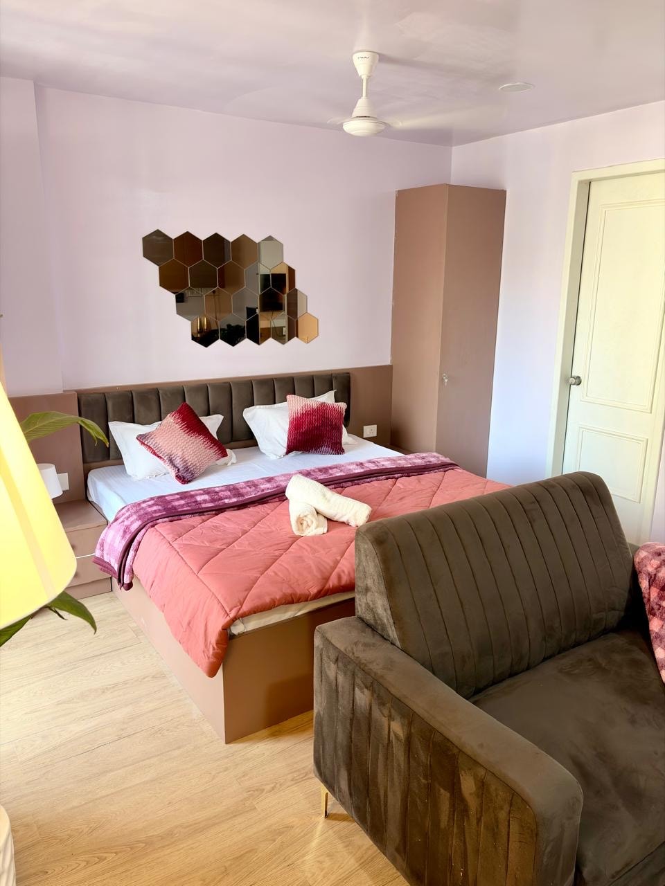 Welcome to our modern, cozy 2 BHK apartment nestled 15 minutes from Pune Airport. Enjoy the tranquillity of this modern retreat equipped with AC for comfort. Stream seamlessly with up to 100mbps WiFi, and conveniently get groceries with our in-house supermarket. Savour complimentary tea and coffee as you unwind on premium mattresses dressed in quality linens. We've got you covered with provided shampoo and body gel for a worry-free stay. Experience comfort and convenience at its best!