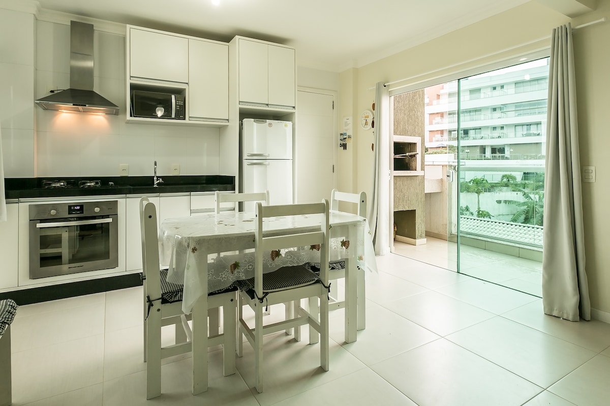 Квартира в отличном месте, недалеко от 3 пляжей: Бомбас, Бомбиньяс и Рибейро. До любого из них можно дойти пешком менее чем за 10 минут. Кроме того, рядом находятся рынки, магазины, пекарни, аптеки, бары и рестораны. В квартире 2 спальни с кондиционером, 1 люкс и диван-кровать в гостиной. На балконе есть барбекю, зона обслуживания со стиральной машиной, полностью оборудованная кухня с холодильником, плитой, микроволновой печью и аэрофритюрницей. В гостиной есть умный телевизор.