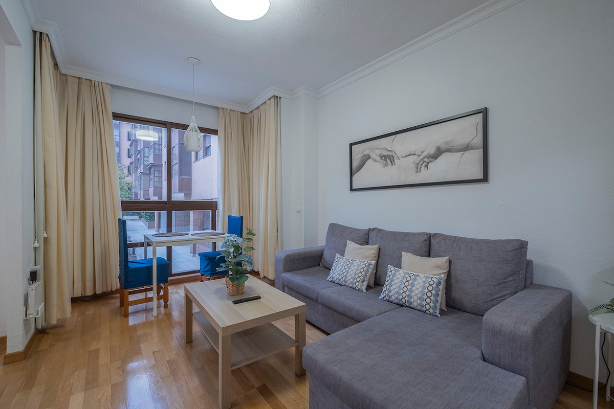 Наслаждайтесь этим недавно отремонтированным домом в центре города в лучшем месте. Квартира недавно отремонтирована с изысканным вкусом и первоклассным качеством, со всем необходимым, чтобы сделать ваше пребывание незабываемым и спокойным. Постельное белье и полотенца премиум-класса Полностью оборудованная кухня с высококачественной техникой. Проектор с экраном 106 дюймов. Netflix. 2-й этаж БЕЗ ЛИФТА Кровать 1,40 6 мин. пешком до Гран-Виа