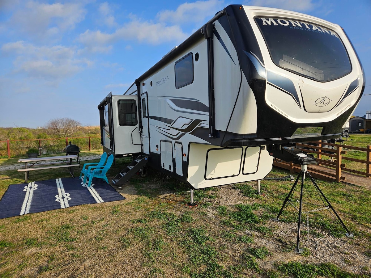Be the first to book the Montana! Super clean, with special touches like the electric fireplace and food pantry. Comfortable queen-size bed in front and big bunkbeds in the rear. Great family dining area and super clean kitchen, fully stocked with everything you need. Enjoy a meal outside with firepit and a new picnic table. Take the kids kayaking or watch them enjoy our pirate ship playground. Book your unforgettable vacation now!. The space: Sleeping up to 4 guests, this retreat features a private king master suite with a Smart TV and a cozy queen pull-out bed in the open living area. The living space also includes a second Smart TV, two recliners, and plenty of comfortable seating, ideal for movie nights, mid day naps, or unwinding after a day of adventure. The fully stocked kitchen features a residential size fridge, large pantry, and all the essentials for easy home cooked meals. The bar style dining seating offers a casual, relaxed place to eat, chat, and enjoy your favorite meals or morning coffee. Outside, make the most of your stay with access to top notch amenities: fish or crab off the private dock, explore the calm canal by kayak, take a ride on one of the bikes, or let the kids burn energy on the oversized pirate ship playground. The palapa area, complete with a grill, picnic tables, and cornhole, offers the perfect place to gather and enjoy the coastal breeze. From sunrises over the water to peaceful evenings under the stars, this bayside escape is your invitation to slow down and savor every moment.
