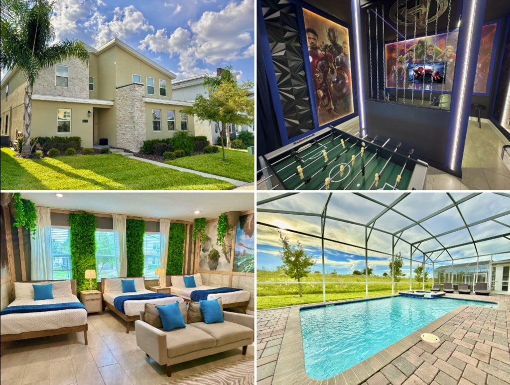 Amazing Brand New Modern Luxurious Home at Encore Resort @ Reunion. PET-FRIENDLY & Minutes to all Theme Parks. BRAND NEW HOME. Private Pool & Spa / Game Room / Movie Theater / Gym / Massage Chair / Fireplace / PS5 / Board Games & Much Much More Embrace the extraordinary and book your stay at our home, where luxury, entertainment come together for an unforgettable vacation experience. ** Please review the rules before booking. Waterpark access is not included. **