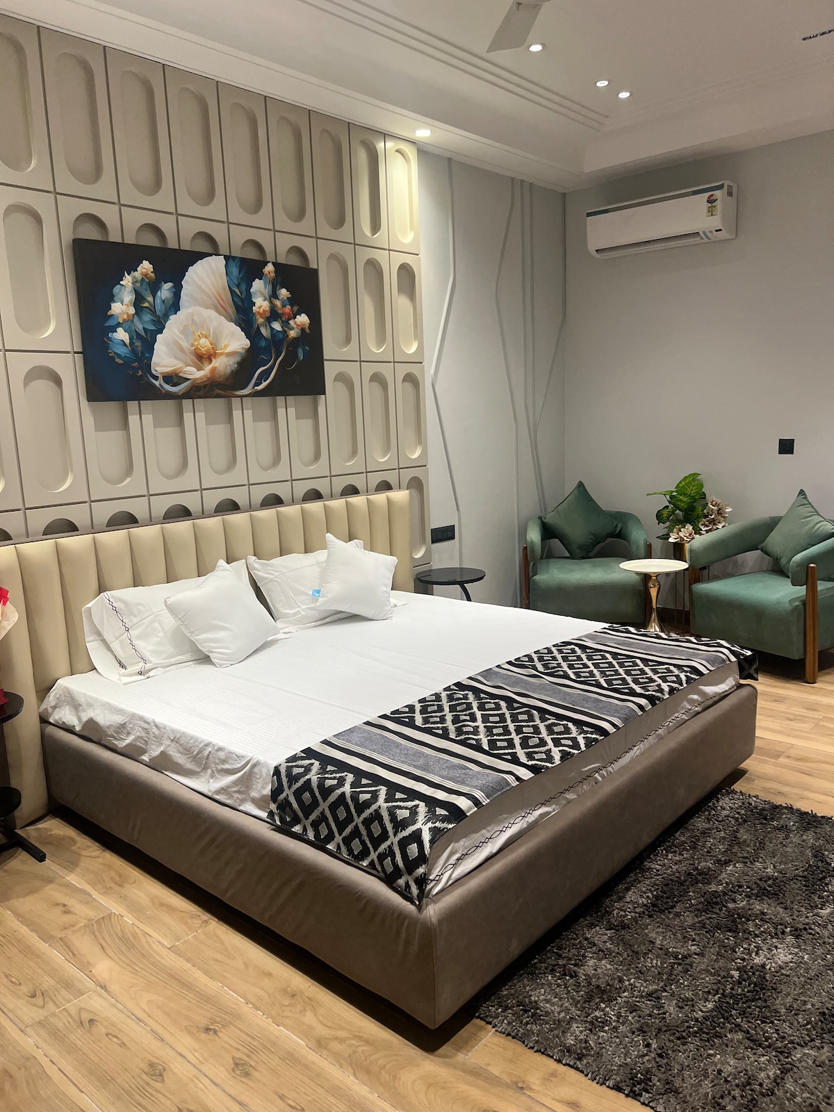 Полностью меблированная квартира-студия, оформленная изысканно и красиво. Это очень просторная роскошная комната площадью 380 кв. футов, полная позитивных вибраций. Кроме того, гость будет наслаждаться полной уединенностью, спокойствием и комфортом, так как это отдельное помещение/квартира без каких-либо помех. * Возможность готовить / кухня не предоставляются. ЗАЕЗД:- Самостоятельная регистрация заезда через высокотехнологичный цифровой замок, так как это свободное жилье.