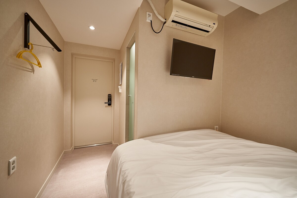 Одноместный номер|Отдельная ванная комната|Автобус из аэропорта, метро 5 минут|Мёндон, Тондэмун, Сунсу, Хондэ 20-35 минут|Бесплатная сушилка, минеральная вода, лапша