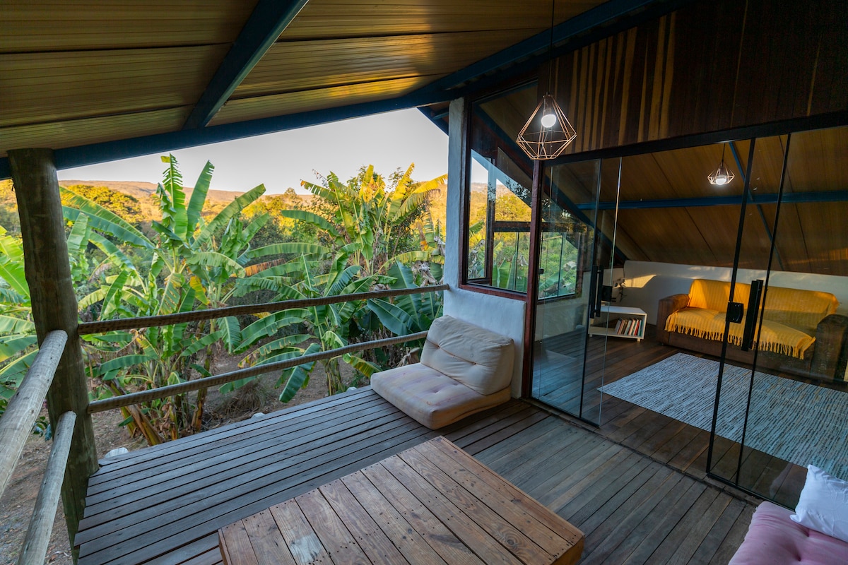 Hospedagem localizada há 1km do centro da Vila de são jorge, o Chalé Toca da Onça oferece conforto, aconchego e elegância na medida certa! Construído com técnicas mistas de bioconstrução, tintas naturais, energia renovável, chuveiro a gás e uma inesquecível banheira de hidromassagem, é a pedida certa para o seu descanso e refúgio em meio a natureza, com uma vista exuberante para o Parque Nacional da Chapada dos veadeiros! Fica próximo a cachoeira do abismo e mirante da janela!!! Imperdível!