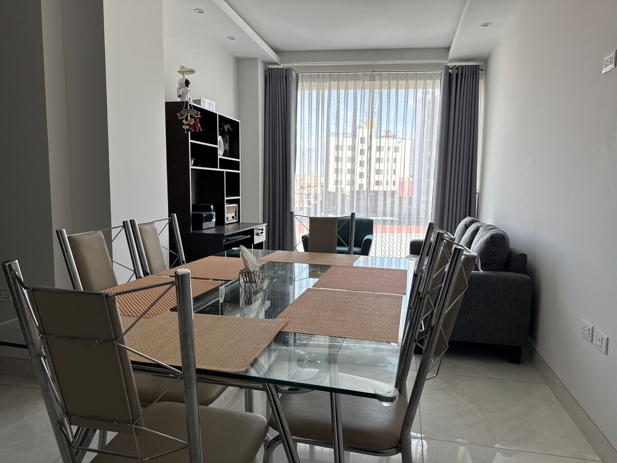 Exclusivo departamento de 1 habitación,ideal para parejas, viajeros de negocios o quienes buscan confort. Ubicado en una de las zonas más exclusivas y seguras de la ciudad, estarás a pasos de cafés, restaurantes, supermercados y centros comerciales Con habitación amplia con cama king. Cocina completamente equipada con refrigerador, microondas, cocina, lavadora Sala cómoda con sofá cama y Smart TV Piscina en la azotea con vista panorámica a la ciudad. Área de parrillero junto a la piscina70380815