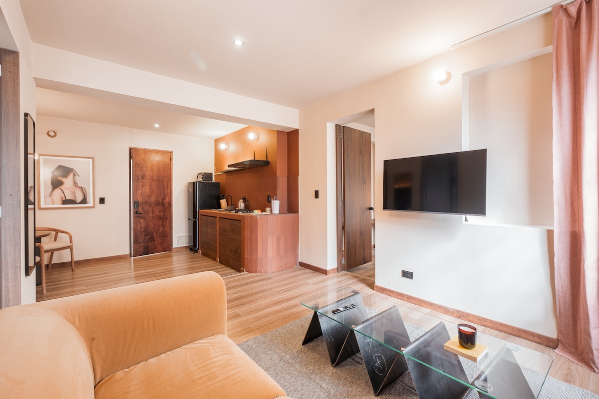 Casa Doce is a place to experience Bogotá like a local: warm light, raw materials, and a design that blends colonial roots with contemporary character. In the house, you’ll find a laundry room, coffee station, coworking area, an indoor patio, and a lobby that welcomes you with art and natural wood.