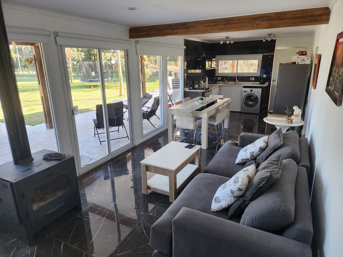 ☞ Casa quinta en Lomas Altas. ☞ Jardín amplio con piscina y hamacas. ☞ Galería con mesa para 12 personas y parrilla, ideal para reuniones. ☞ Amplio Living comedor. ☞ Cocina completamente equipada. ☞ Aire acondicionado frío/calor en habitaciones. ☞ Salamandra a leña. ☞ Smart TV en living y dormitorios. ☞ WiFi.