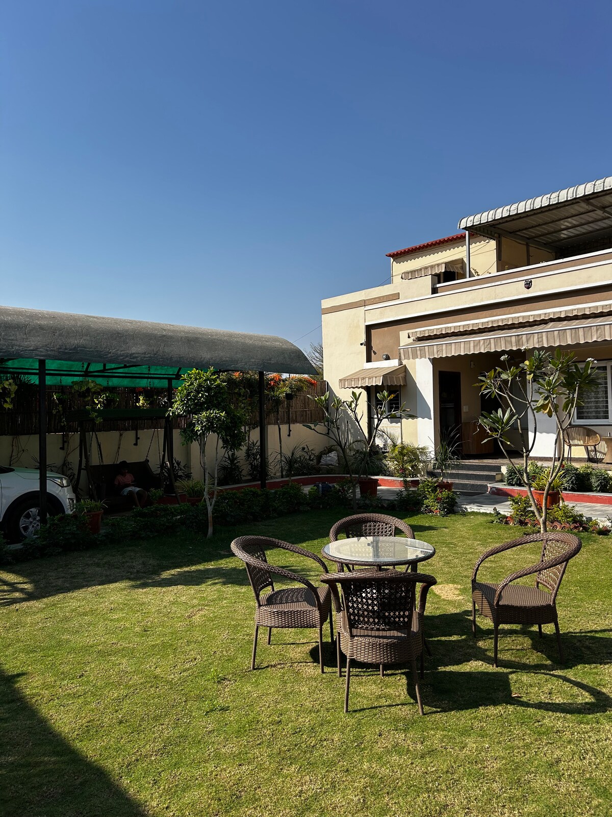 Побег от хаоса Джайпура, не покидая город. Omkanta Farms — это обширное частное поместье площадью 3000 кв. ярдов, предназначенное для тех, кто ценит уединение, природу и роскошь. Независимо от того, проводите ли вы семейное торжество, встречаете закат у бассейна или отдыхаете в тихом месте с домашними животными, это ваше эксклюзивное убежище. Наслаждайтесь полной свободой в выборе еды. Воспользуйтесь нашей полностью оборудованной кухней, наймите местного повара или закажите еду из лучших ресторанов Джайпура через приложение. Можно организовать барбекю.