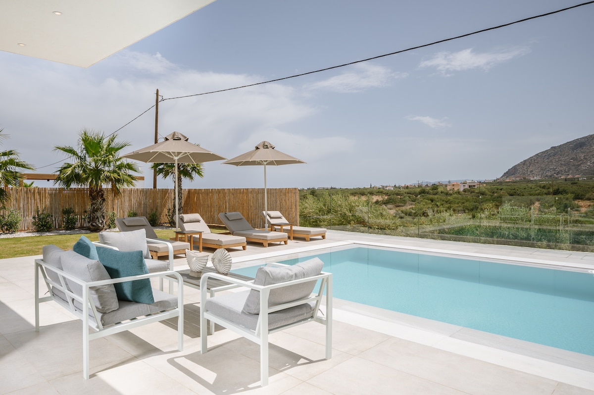 Villa Thalassa is a modern, newly built villa with 3 bedrooms and 3 bathrooms, located in the peaceful area of Gouves, close to the beach. Surrounded by nature, it offers an elegant and fully equipped space featuring a private swimming pool that can be heated upon request, comfortable sun loungers, and an outdoor kitchen. Combining comfort and privacy, it is an excellent choice for families or groups of friends looking to relax and explore Crete in style.