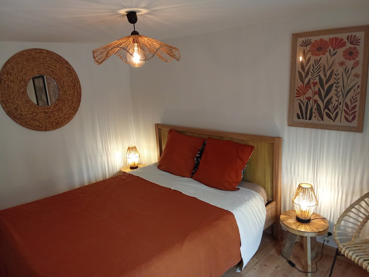 Charmant logement neuf de 30m2 comprenant une chambre (lit double 160 et canapé convertible 140) avec Smart TV, une salle de bain (avec WC et douche) ainsi qu'une cuisine équipée d'une plaque de cuisson, frigo, micro-ondes, machine à café senseo, vaisselles. Entrée et sortie autonome, logement indépendant. Situé à : 10 minutes de Cholet et de Chemillé 35 minutes du Puy du Fou 45 minutes d'Angers Linge de lit et de toilette fournis. Lit parapluie disponible sur demande.