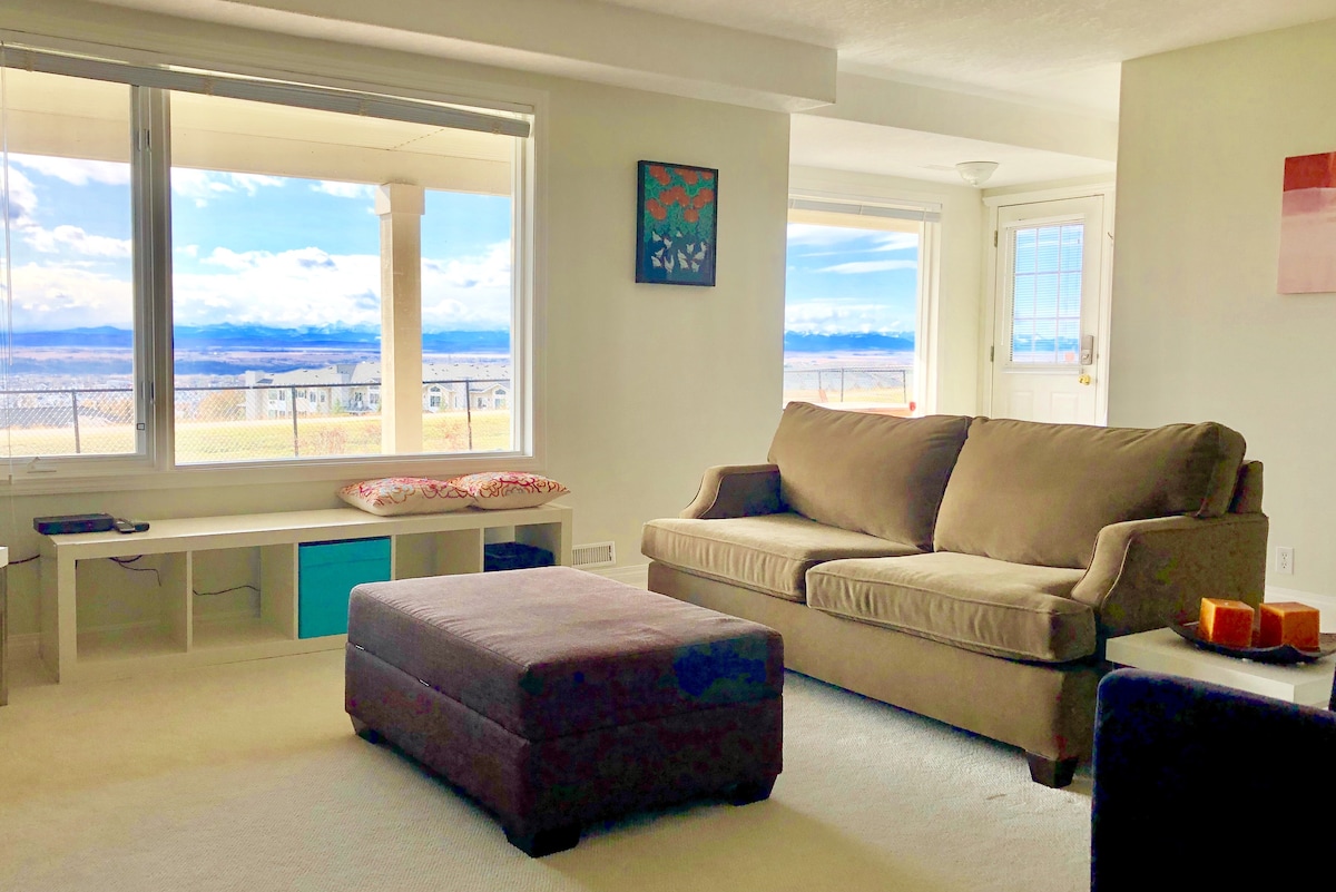 Светлый и очень чистый люкс с потрясающим видом на горы и город и отдельным входом. Люкс достаточно большой, чтобы легко разместить группу из 4 человек. Большие окна приносят тонны естественного света в люкс. Тихий, безопасный и дружелюбный район Калгари на северо-западе удобен почти для всего: почтового отделения, Walmart, London Drugs, Tim Hortons, Starbucks, ресторанов , поля для гольфа, C-train и быстрого доступа к горам, аэропорту, UofC, SAIT и шоссе. Дружелюбный и отзывчивый хозяин.