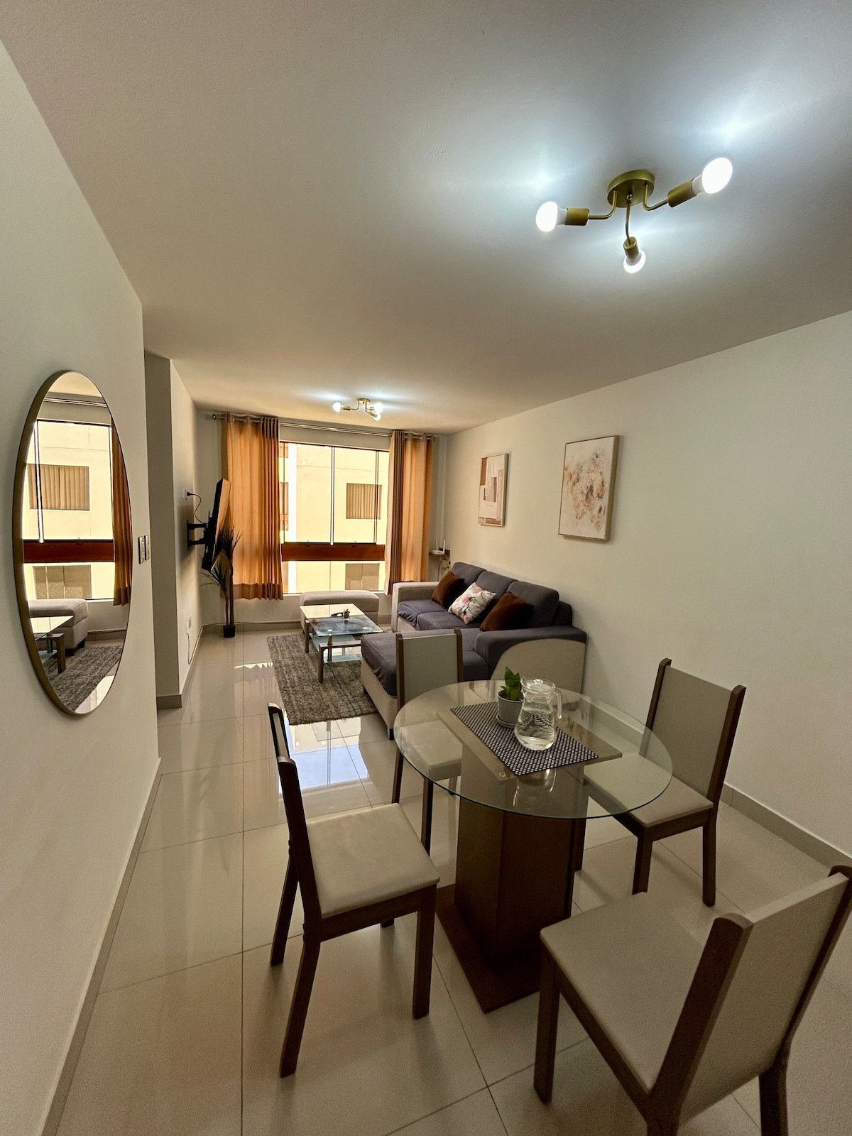 Красивая квартира, расположенная недалеко от Av. Principal, в 2 кварталах от Av. Chinchaysuyo (Yortuque) и в 3 кварталах от проспекта Санта-Виктория, расположена в новом кондоминиуме Paseo Grau. 7 минут до аэропорта. Рядом с магазинами, клиниками, прачечной, школами, в 2 минутах от района Урб-Санта-Виктория (бар, рестораны, магазины) и в 3 минутах от Жокей-клуба. В кондоминиуме есть общие зоны, предлагающие комфортное, тихое и гостеприимное пребывание в городе дружбы.