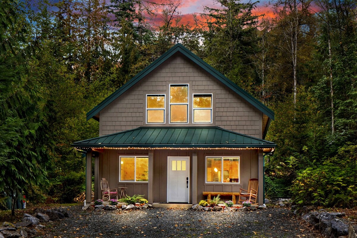 Роскошный отдых, предназначенный для пар, идеально подходит для романтического отдыха. Идеально подходит для приключений на горе Бейкер: Гидромассажная ванна с ✔️ кедровым покрытием ✔️ Сауна-бочка ✔️ Душ с холодной водой на улице Место для✔️ костра и газовый камин в помещении ✔️ Жилье недавно отремонтировано до мелочей ✔️ 30 минут до горнолыжного курорта Бейкер. ✔️ 10 минут пешком до Каньон-Крик. Более ✔️ 30 троп на горе Национальный лес Бейкер-Сноквалми в 40 минутах. ✔️ Резервный генератор 586 кв. футов уютного, современного комфорта 🌲✨ Обратите внимание: домик не подходит для детей и младенцев.