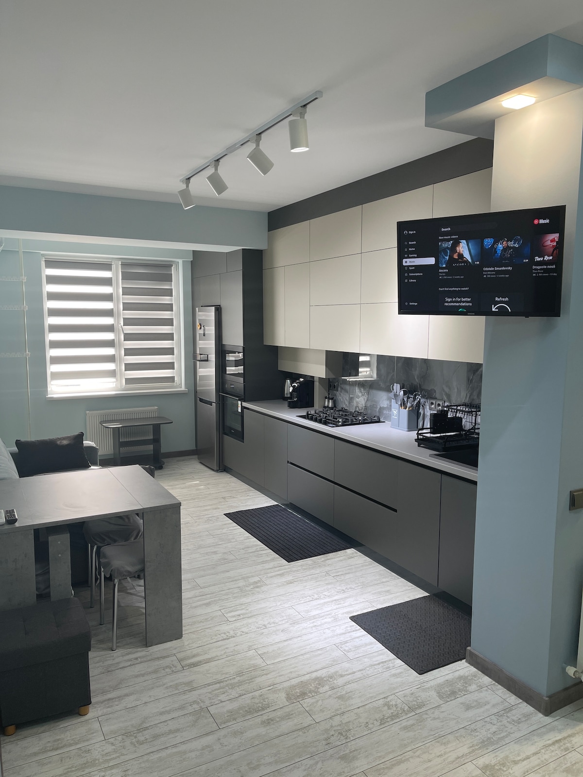 Эта квартира является идеальной базой для вашего пребывания в Кишиневе, предлагая комфортное и уютное жилье. Каждая комната со свежим современным дизайном поможет вам почувствовать себя как дома, будь то выходной, семейная поездка или деловая поездка. Расположение гибкое, позволяет легко расслабиться или сделать все, и всего в нескольких шагах от лучшего, что может предложить город. Независимо от того, отдыхаете вы или исследуете окрестности, у вас будет все необходимое для легкого проживания.