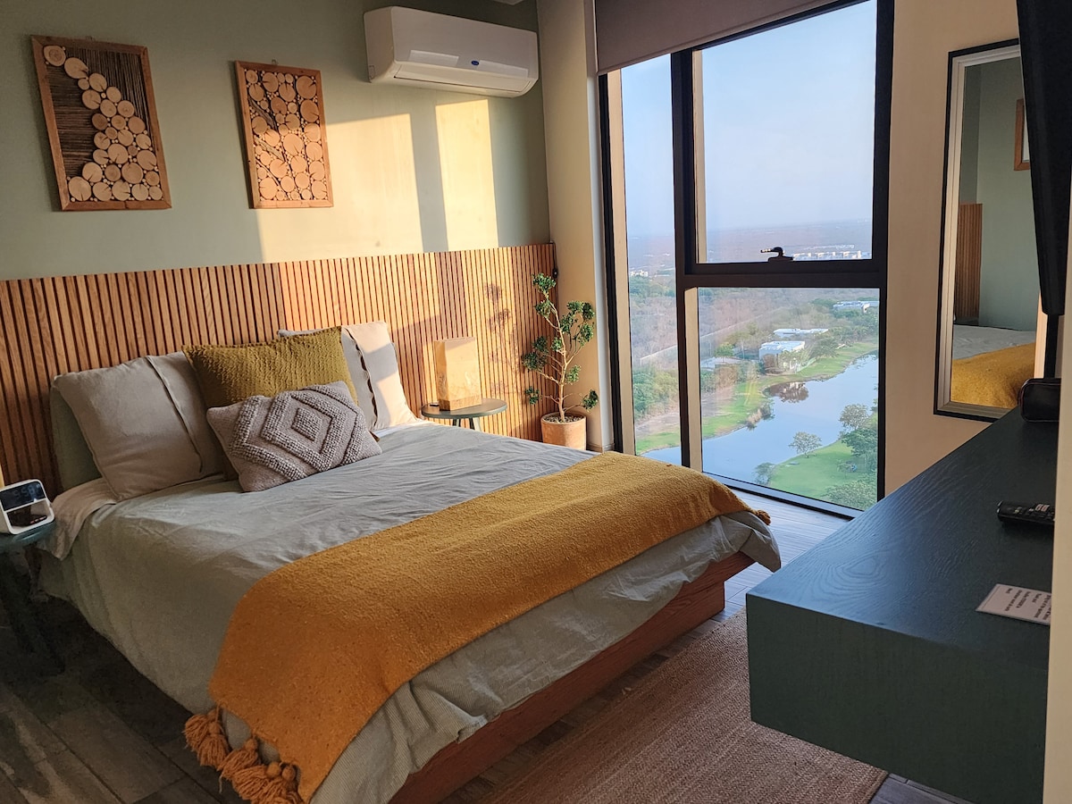 Новая квартира на первом этаже. с легким доступом с оптоволоконным Интернетом. Кондиционер в каждой комнате умный телевизор в каждой номере (с кабельными каналами в главной комнате) Просторная крытая парковка с доступом к квартире Кухня, оборудованная обогревателем , небольшая терраса в квартире. Рядом с больницами, школами, Plaza Altabrisa, высококлассной больницей, Star Medica в 5 минутах езды; в 3 минутах езды от Walmart, Diamplaza, Oxxo, ресторанов, баров и Периферико.