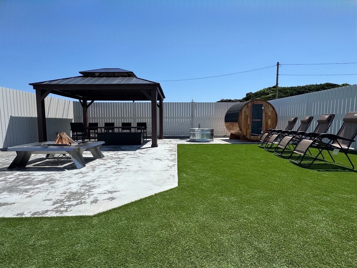 自然に囲まれた一棟貸しのヴィラで過ごす、特別な週末ステイ。静かな森と広い芝生に囲まれた空間で、プライベートサウナや外気浴、BBQ、屋外映画館、200㎡を超えるドッグランなど、多彩な体験が待っています。愛犬と一緒でも安心して過ごせる仕様で、家族旅行や友人との集いにも最適です。大きなリビング・キッチン・ダイニングを自由に使い、夜は満天の星空を眺めながら焚き火や映画鑑賞などアウトドアの醍醐味を満喫できます。車で15分ほどで九十九里の海岸もあり、自然散策や海遊びも楽しめます。都内から約1時間30分とアクセスも良く、日常の喧噪を離れて心身共にリラックスした滞在が可能です。最大8名まで宿泊できる広い室内空間は、快適な家具・ベッド・設備が整い、長期滞在にも対応しています。非日常の体験とホテル品質の快適さを兼ね備えた、Booyah Sauna 九十九里 Baseでしか味わえない特別な時間をお過ごしください。