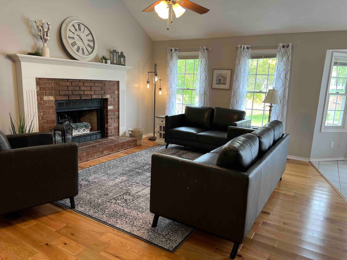 Расслабьтесь в этом уникальном и спокойном месте. Расположен в центре города между Спрингфилдом и Брэнсоном в причудливом городке Озарк. Мы находимся в двух минутах от городской площади, но вам понравится наша загородная обстановка. Мы окружены лесами и пастбищами, так что вы можете расслабиться, отдохнуть, насладиться природой, увидеть диких животных и отдохнуть в нашем крытом патио. У нас есть стиральная машина/сушилка. Кровать размера King size, двуспальная кровать и диван. Полностью укомплектованная кухня. Много мест для отдыха на открытом воздухе. Костровище с дровами.