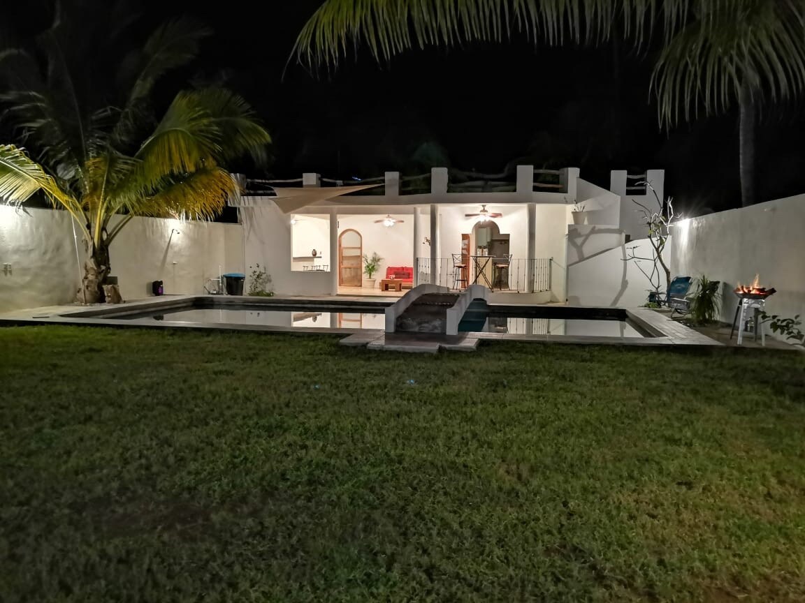 Дом у пляжа на побережье Мичоакана (Плайя-лас-Пеньяс) Наслаждайтесь этим домом для семейного отдыха В ней 6 комнат (каждая с ванной комнатой и кондиционером) вместимостью до 20 человек. Насладитесь бассейном Чукум, быстрым доступом и прогулкой до пляжа. На пляже вы найдете рестораны и парады, где можно позавтракать, пообедать и поужинать. В одном квартале от дома есть магазин Chochera на 4 машины