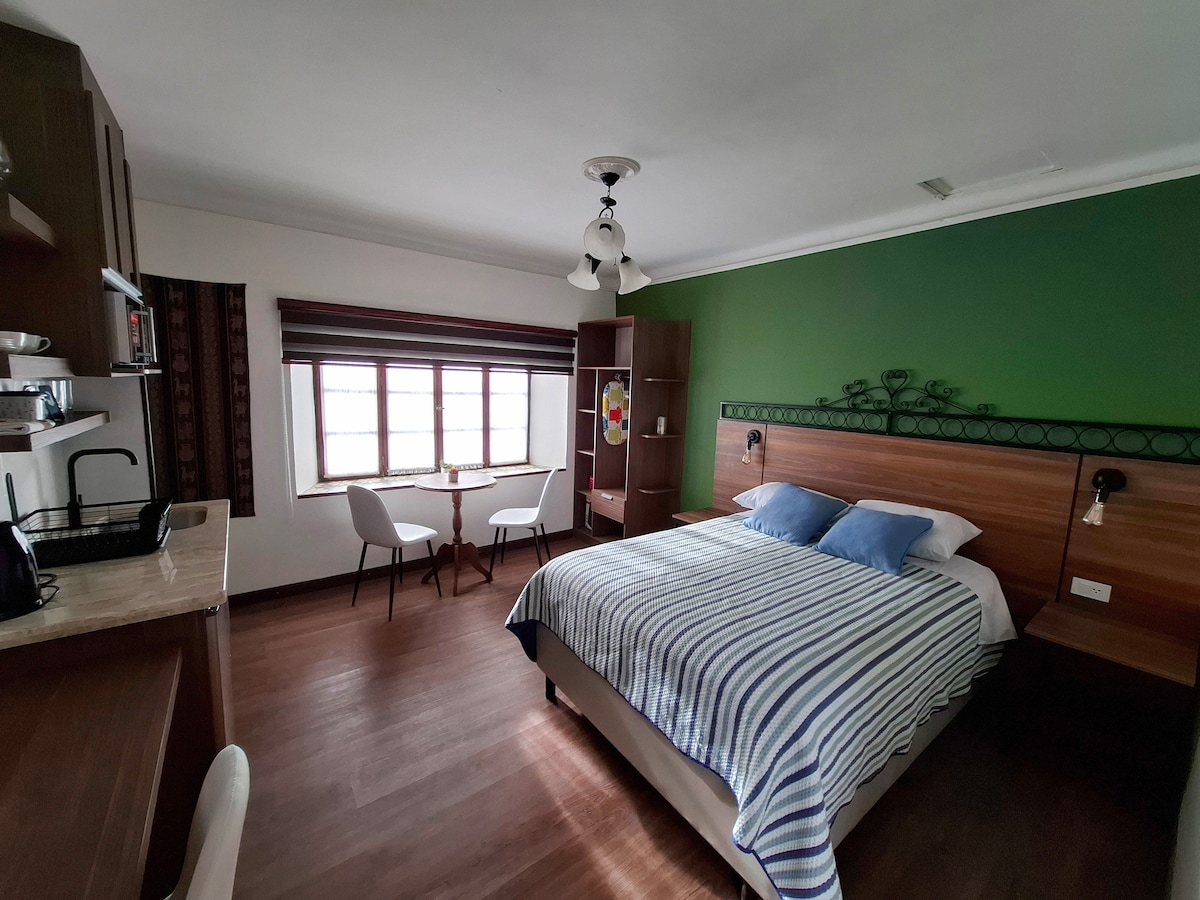 Es una habitacion en espacio de antigua hacienda colonial en medio de un viñedo con increible paisaje. Es una habitacion muy comoda, con area de balcon decoracion rustica, piscina, baño privado y cocina independiente y acceso a la vida de huerta y campo.