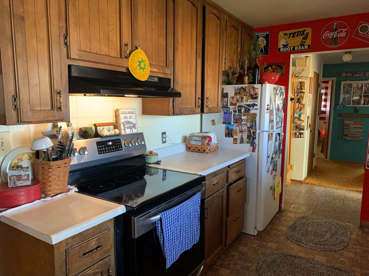 Остановитесь в этой деревенской жемчужине. Остановитесь на нашей маленькой ферме площадью 160 акров, а в начале лета вы можете собрать свои абрикосы и взять с собой сумку, чтобы перекусить во время поездки, или приготовить абрикосовый пирог, 🥧 пока вы здесь. Вы можете прогуляться с собакой, до озера с содовой или вокруг наших полей люцерны, которые окружают дом . Или ...просто расслабьтесь в шезлонге снаружи у костра...или внутри перед камином... с чашкой горячего шоколада или кофе ...и наслаждайтесь.