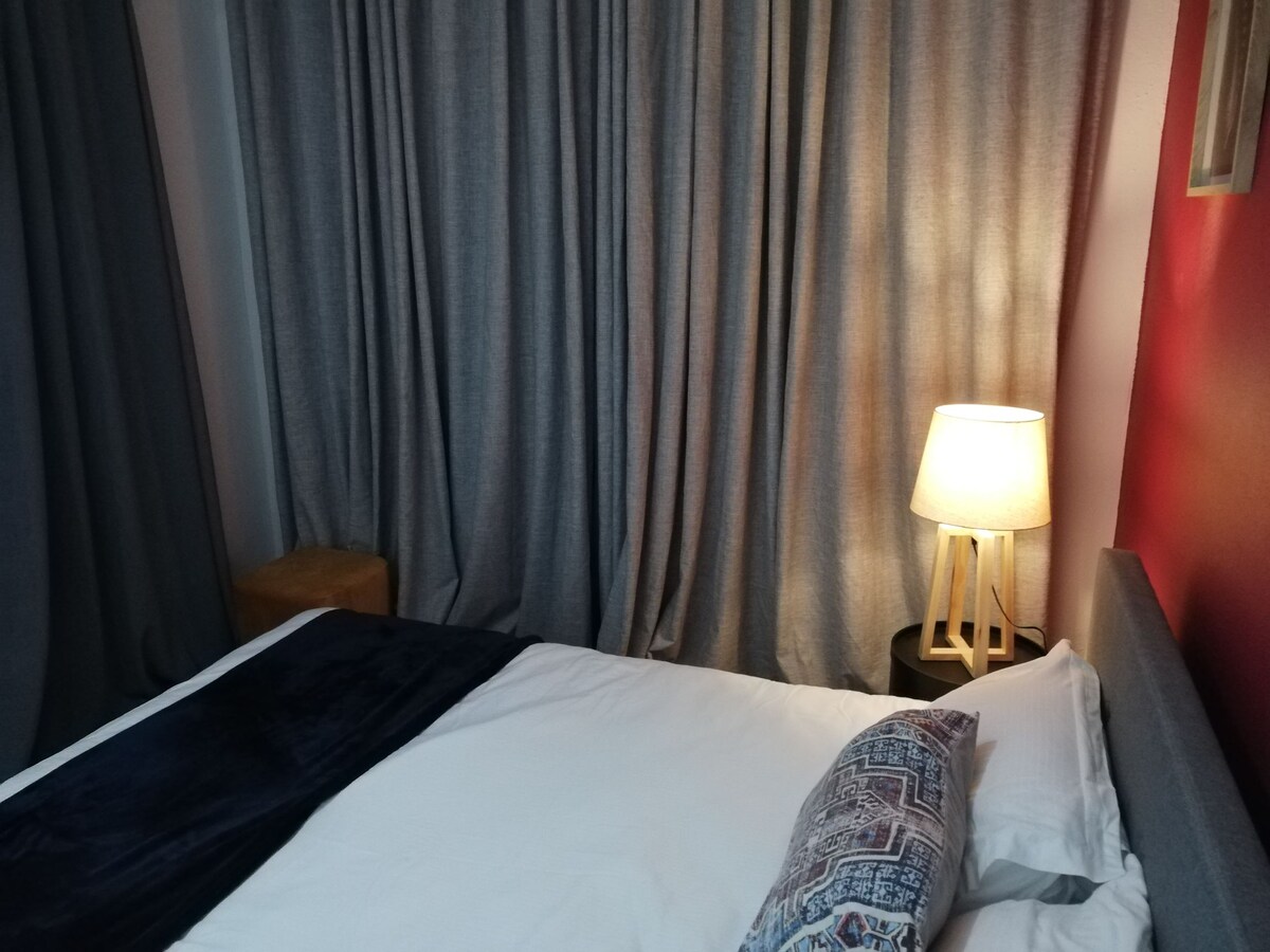 Великолепный президентский люкс, предназначенный для президентов и тех, кто хочет быть королевским на несколько ночей по доступным ценам. Уютный, красивый, роскошный, в небольшом защищенном бутике. Идеально подходит для отдыха, деловых поездок или освежающих выходных. Удобная кровать. 1 диван-кровать в гостиной. Красивая кухня с новой техникой и декором. 65-дюймовый HD Smart TV!! Стиральная машина. 12 минут до аэропорта Тамбо. 6 минут до Боксбурга. 10 минут до Бедфордвью. Потрясающая красота!