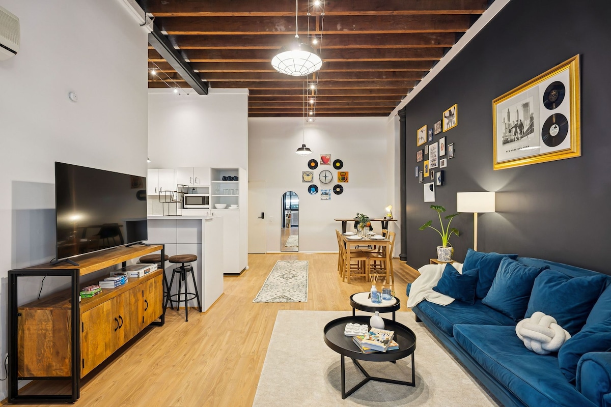 Войдите в этот стильный лофт в индустриальном стиле с 1 спальней, лиственными деревьями на крыше и решетчатыми французскими дверями, через которые проникает свежий воздух и городская атмосфера. Всего в нескольких минутах от Королевского парка и близлежащих кафе, он идеально подходит для работы или отдыха. Уникальный городской отдых, сочетающий комфорт, стиль и характер для незабываемого отдыха.
