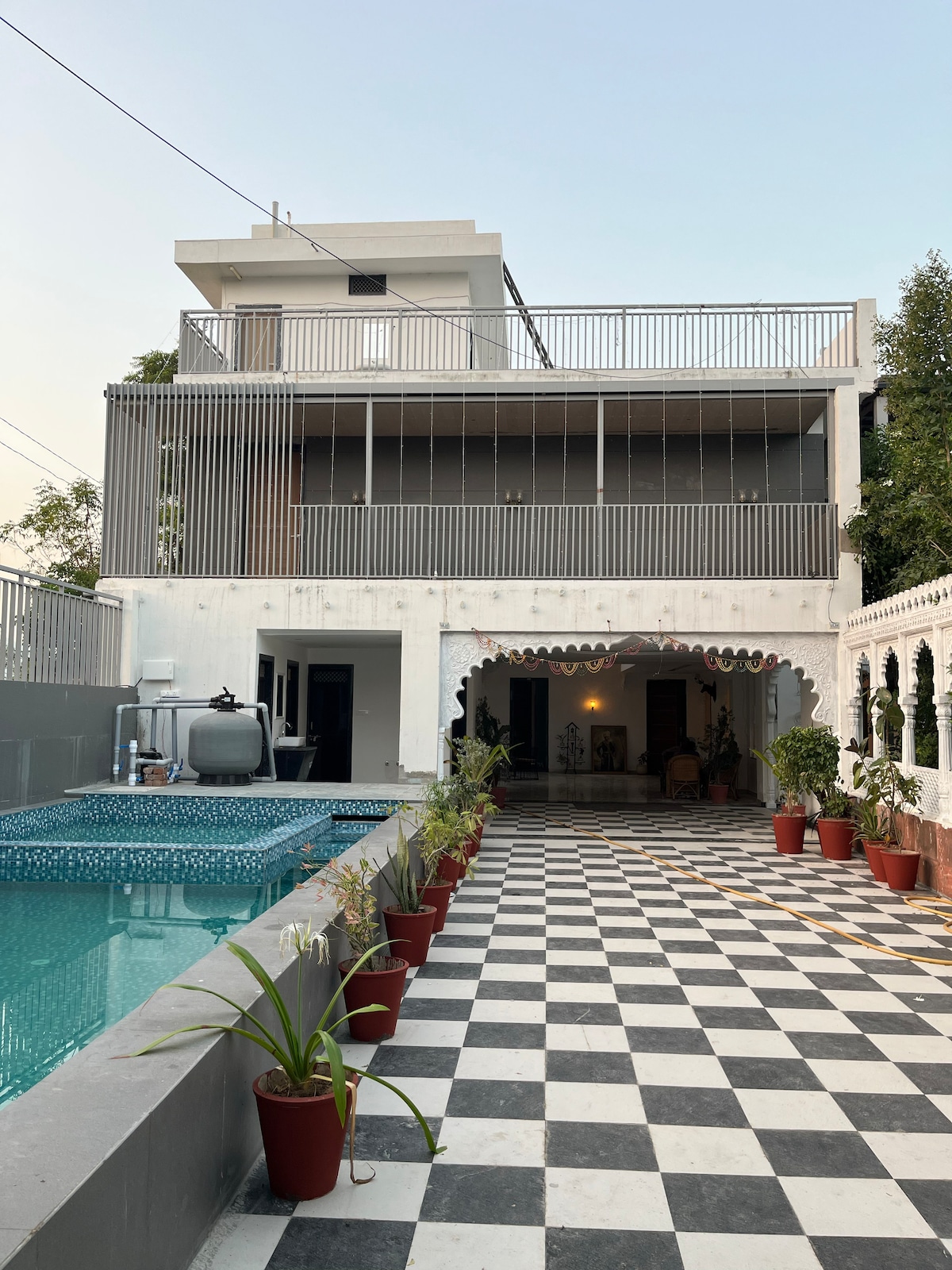 Boutique luxury stay that offers the perfect blend of comfort, design, and nature. Designed with a refined aesthetic that reflects Rajasthani culture and contemporary minimalism, this private villa is ideal for travelers seeking a serene yet stylish escape. Thoughtful Interiors – Every corner is curated with handpicked art and modern elegance, giving it a warm, lived-in feel. With limited rooms, the villa ensures an intimate, peaceful atmosphere — perfect for couples, families, or small groups.