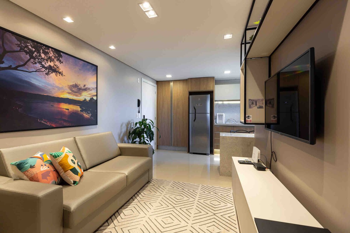 Добро пожаловать в нашу квартиру в Foz Center! Расположен в одном из немногих зданий с прачечной, тренажерным залом, бесплатной парковкой и крытой крытой парковкой. Само здание современное с круглосуточной охраной/консьержем и коворкингом! В квартире вас ждут комфорт и чистота. Две ванные комнаты, прекрасный вид, 1 двуспальная кровать размера Queen size и 1 удобный диван-кровать, кухня полностью оборудована для приготовления пищи, даже всего в нескольких шагах от лучших ресторанов города.