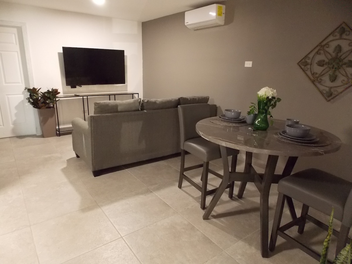 ☆ Отремонтированное 5-звездочное жилье со всеми новыми/основными удобствами для тихого, безопасного и центрального жилья. Отличное расположение, которое позволяет добраться до нескольких важных точек города за несколько минут (на машине), таких как: 3 минуты от США (Puente Libre Int), 15 минут от Американского консульства, 4 минуты от UACJ и специализированного медицинского центра. Отдельный вход и камеры наблюдения на территории. К услугам гостей двуспальная кровать размера Queen size и диван-кровать, смарт-телевизор с Интернетом и учетной записью Netflix.