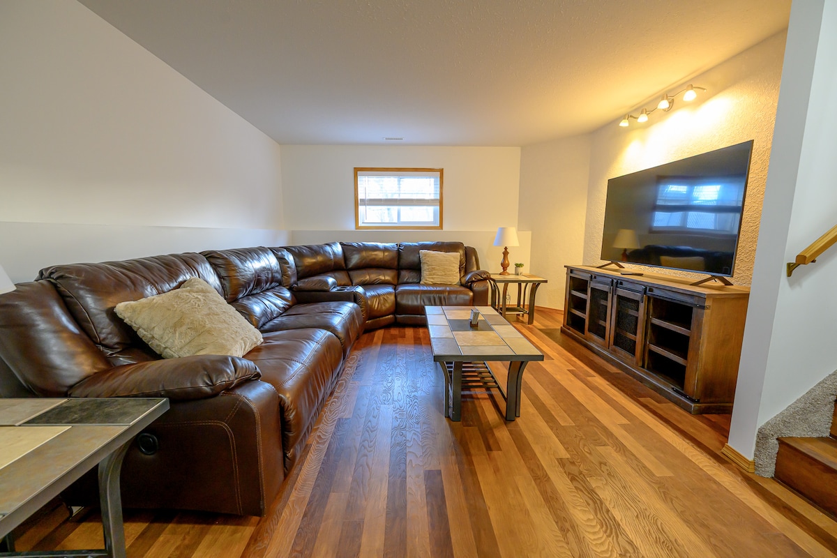Этот светлый и чистый люкс является идеальным местом в 20 минутах ходьбы от торгового центра или продуктового магазина. Вы также можете прогуляться до магазина на углу в конце квартала или продолжить прогулку по красивым тропам Кристал-Лейк. На просторном заднем дворе можно расслабиться с напитком на террасе или у костра. Для тех, у кого есть дети, есть небольшой парк прямо через задние ворота.