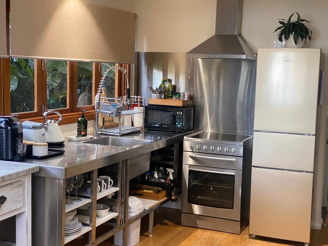 Большая зона открытой планировки, состоящая из гостиных, журнального столика, двуспальной кровати размера Queen size, мини-кухни. Виды на Питтвотер, которыми можно наслаждаться, особенно в отличный день заката. Снаружи крытая зона с обеденным столом и стульями. Большое газовое барбекю. Газон и открытый бассейн с шезлонгами для тех ленивых солнечных дней.