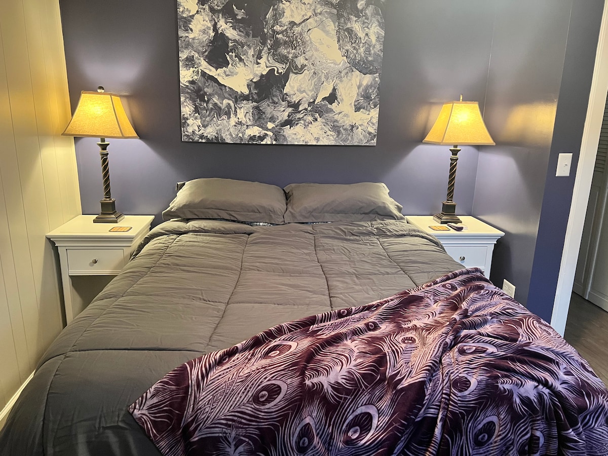 Выпейте бокал бурбона/вина, наслаждаясь живописным видом на Луисвилл на частном открытом балконе. Этот стильный кондоминиум с 2 спальнями и 2 ванными комнатами рассчитан на 6 человек со всеми удобствами дома. В нескольких минутах ходьбы от скачек, винокуренных заводов, пешеходных/велосипедных маршрутов и ночных клубов. Ипподром Черчилль-Даунс — 13 минут. Аэропорт Луисвилла — 12 минут. KFC Yum Center — 5 минут. Мост Биг-Фор — 2 минуты.