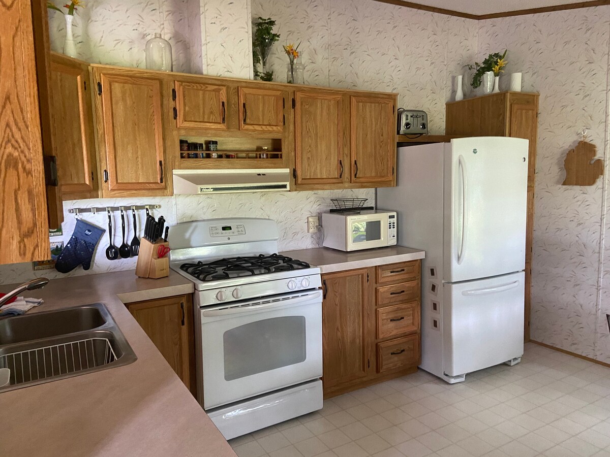 Добро пожаловать, оставайтесь и играйте в течение 2 ночей, неделю или больше. Расположена в 20 минутах от Макино-Сити и рядом с тропой № 7 с удивительными пейзажами и множеством возможностей поесть и выпить на тропе. Готовьте на хорошо оборудованной кухне. Расслабьтесь и развлекайтесь в большой гостиной с 50-дюймовым телевизором и 2 большими диванами. Хорошо отдохните в одной из 2 отдельных спален или в открытом лофте с двумя односпальными кроватями. Одна ванная комната с душем и садовой ванной на первом этаже. Рядом с Mackinaw City/ Mullet Lake.