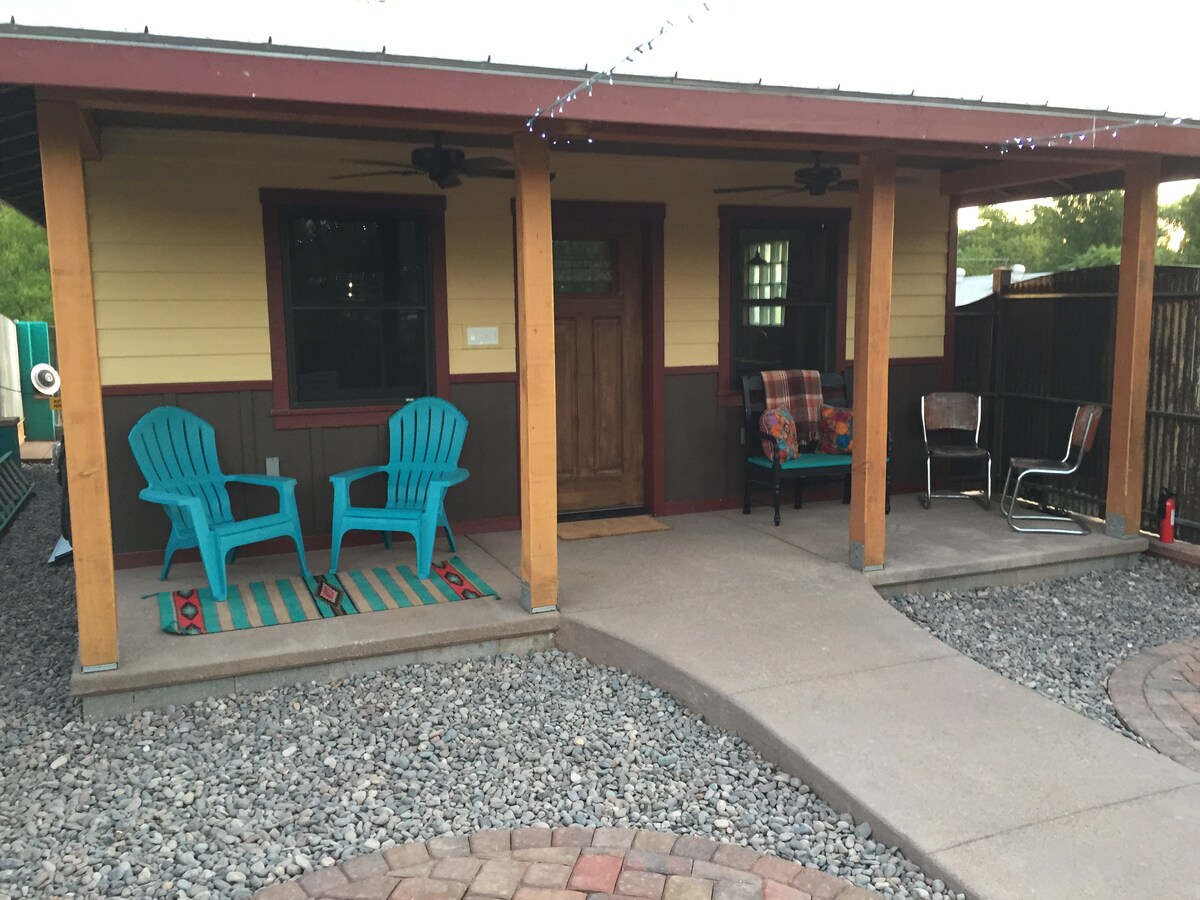 The Cactus Pad, вдохновленный архитектурой Аризоны, - это частный дом с индивидуальным дизайном, расположенный в историческом районе Старого города Коттонвуд - сердце винодельческого региона Аризоны. Всего в одном квартале от Мэйн-стрит, наслаждайтесь развлечениями без необходимости водить автомобиль. Менее чем в минуте ходьбы находятся магазины на Мейн-стрит, дегустация вина, изысканная еда, живая музыка и многое другое. Остановитесь здесь и исследуйте исторический Старый город, насладитесь рекой Верде и многим другим.