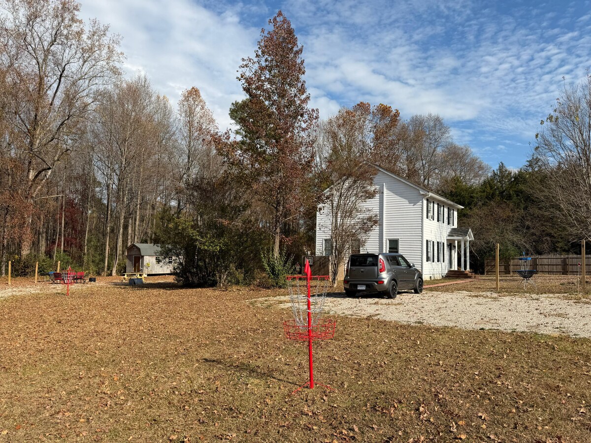 Полностью отремонтированный гостевой дом на 36 акрах с пешеходными тропами и прекрасными видами. У нас небольшая семейная ферма, где выращивают мясных коз, свиней и кур. Осел, две коровы и пять фермерских собак дополняют нашу команду. Присоединяйтесь к нашей частной экскурсии по ферме, чтобы познакомиться с животными - просто не забудьте надеть снаряжение для амбара! Расположена рядом с государственным парком Клеммонс и в 5 минутах от гор до Морской тропы и реки Нойс. Отдохните от суеты и будьте всего в нескольких минутах от Клейтона и Роли.