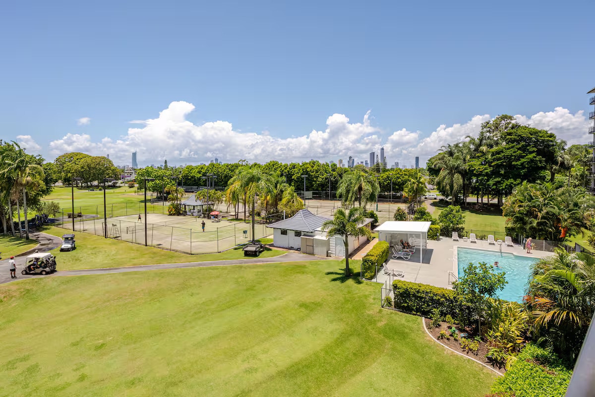 Из этих потрясающих апартаментов открывается захватывающий вид на поле для гольфа и городской пейзаж Голд-Коста.Наслаждайтесь новым бассейном с подогревом и сауной на территории отеля.Расположен рядом с полем для гольфа Surfers Paradise, всего в 10 минутах от пляжей и достопримечательностей.В стоимость входит бесплатная парковка, полностью оборудованная кухня, ванная комната и прачечная.В спальне установлена кровать размера «king-size», а в гостиной — диван-кровать и односпальная кровать, что делает ее идеальным местом для спокойного и комфортного отдыха.
