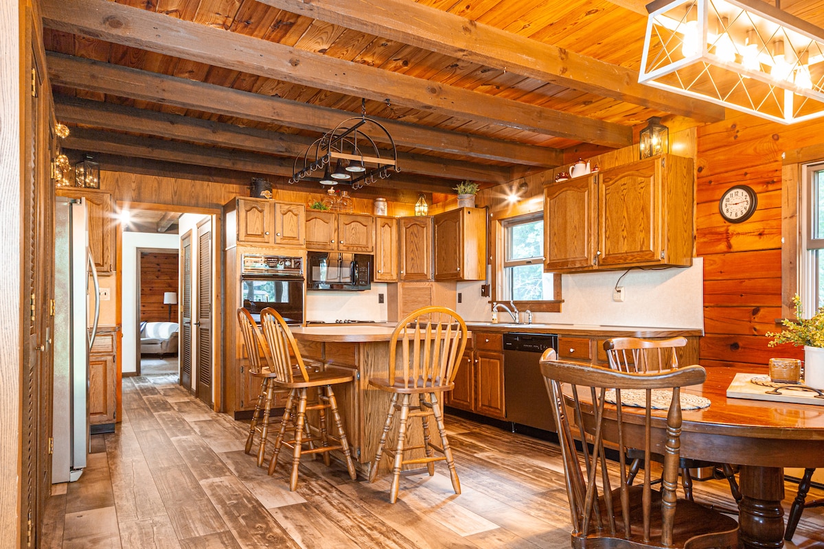 Welcome to The Loft at Woodhaven Hideaway! Peaceful, unique, and cozy, this timber frame home invites you to rest and relax. This old blacksmith shop is now a luxurious & comfortable place to stay on your honeymoon, a business trip, or a peaceful place to rejuvenate. The Loft's spa like large bathroom has become our guests favorite reason to stay here because of its large shower with twin rain head shower heads coupled with an extra long, 2 person soaking tub with fireplace.