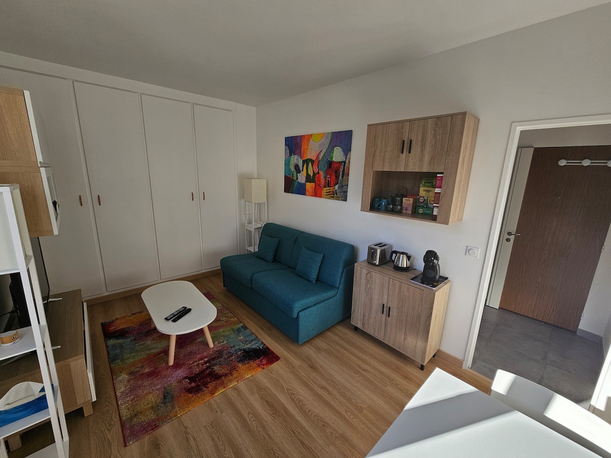 Преимущество: всего 1 станция от Парижа. Полностью оборудованная и полностью отремонтированная квартира площадью 23 м2 в июне 2023 года. Жилье расположено в тихом и семейном районе. На улице Chance Milly в Клиши. Оптимизировано для комфортного пребывания для двух-трех человек. Доступ: - Железнодорожная станция "Clichy-Levallois" Transilien, линия L: 6 минут пешком. - Парижский центр (Gare Saint Lazare) 11 минут на общественном транспорте. - Супермаркет Franprix и рестораны в непосредственной близости (3 минуты).