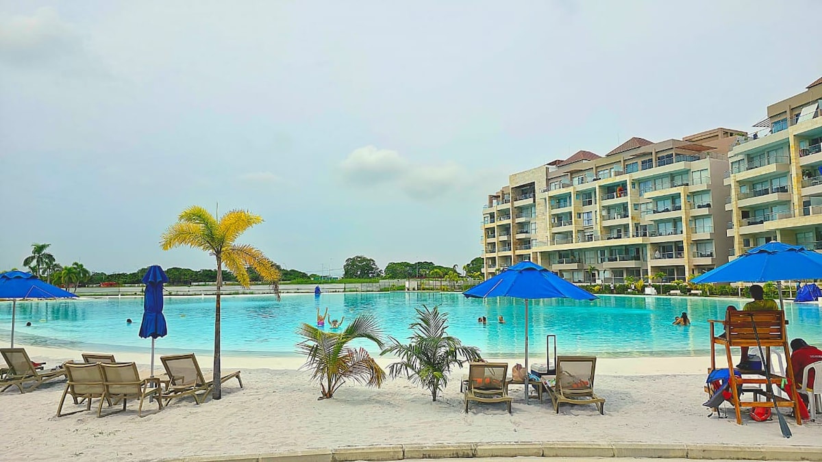 Роскошная квартира в Картахене в первых лагунах Кристал в Колумбии с кристально чистой водой и белым песчаным пляжем в кондоминиуме Baia Krystal с исключительным видом на лагуну, искусственный пляж с пресной водой и водными видами спорта, джакузи, турецким, сауной, тренажерным залом, детским садом, комнатой для мероприятий и лучшими и комфортабельными удобствами в этом районе. 5 минут от пляжей Мансанильо на машине , 10 минут от аэропорта и 15 минут от исторического центра.
