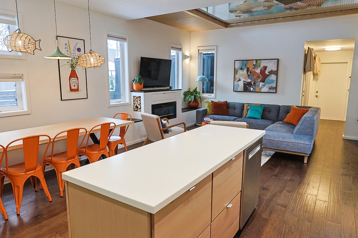 Деревенский/современный декор с очарованием. Уютная спальня с двуспальной кроватью размера King size и телевизором Smart TV. Две дополнительные спальни с кроватями размера Queen size. Идеально для семей! ✧ 1400 кв. футов ✧ 8 минут до центра города/ЛЕДОВОГО района. ✧ Полностью огороженный двор с водой и гидромассажной ванной. ✧ Парковка на двоих + уличная парковка ✧ Смарт-телевизоры/кабельное телевидение ✧ Вход без ключей Предоставляется кофейная гуща✧ Тима Хортона