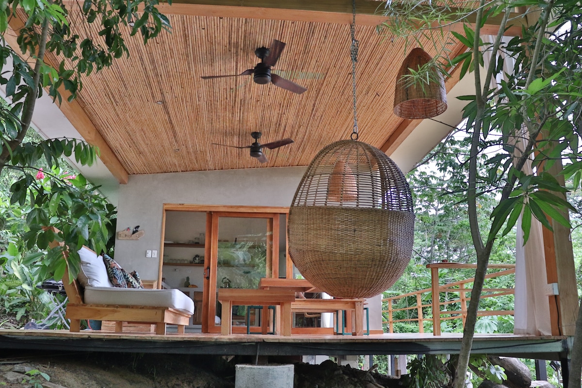 The bungalow is built in a warm, friendly wooden surf shack style. Sitting backed into the jungle a mear 400m up the side of a hill on a secluded private road, overlooking playa St Teresa from the famous surf break, Suck Rock to the North, down to La Lora in the South. It's a few minutes walk uphill from the main road but the atmosphere and the privacy is worth every single step. The beach, surf rentals and a grocery store are all in 5 - 10 minutes walking distance.